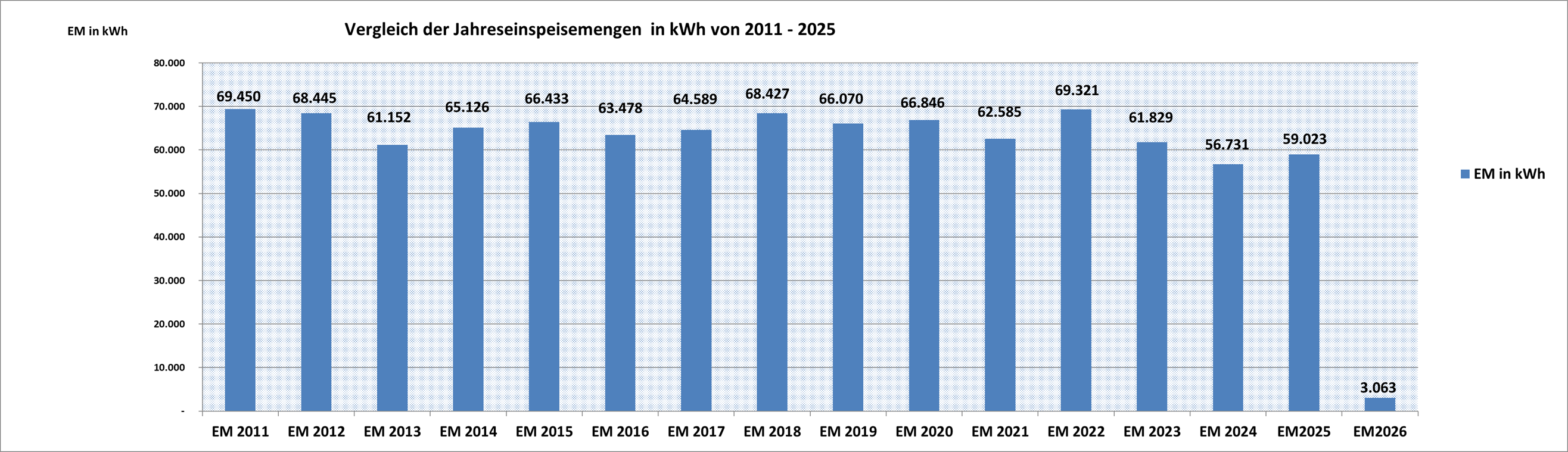 der Einspeisemengen (EM) der einzelnen Bürgersolardächer und Jahr |