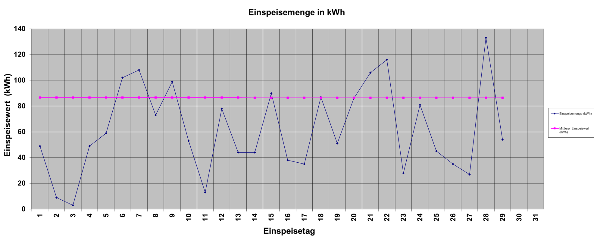 | Mittlerer Einspeiswert (kWh) | 86,7 | 86,7 | 86,6 | 86,6 | 86,6 | 86,6 | 86,6 | 86,6 | 86,6 | 86,6 | 86,6 | 86,6 | 86,6 | 86,6 | 86,6 | 86,6 | 86,5 | 86,5 | 86,5 | 86,5 | 86,5 | 86,5 | 86,5 | 86,5 | 86,5 | 86,5 | 86,5 | 86,5 | 86,5 | |||