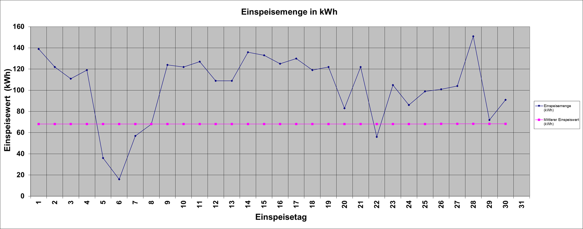 | Mittlerer Einspeiswert (kWh) | 68,1 | 68,1 | 68,1 | 68,1 | 68,1 | 68,1 | 68,1 | 68,1 | 68,1 | 68,1 | 68,1 | 68,2 | 68,2 | 68,2 | 68,2 | 68,2 | 68,2 | 68,2 | 68,2 | 68,2 | 68,2 | 68,2 | 68,2 | 68,2 | 68,2 | 68,2 | 68,2 | 68,3 | 68,3 | 68,3 | ||